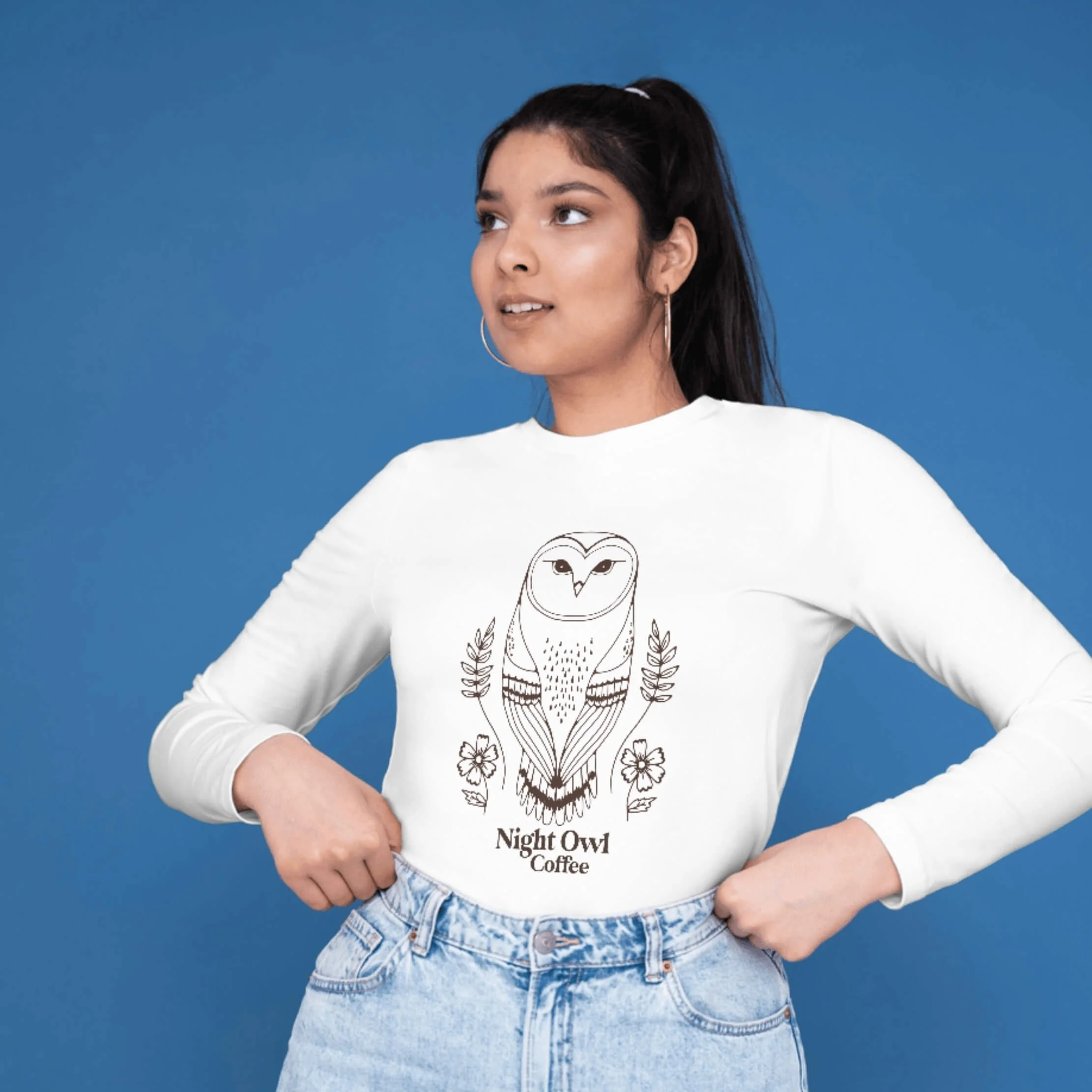 PROJECT GOAL: Create a merch illustration featuring a wise barn owl framed by wildflowers and foliage. The monochrome design feels both classic and enchanting, making it versatile across mugs, tees, and tote bags. This artwork positions the café as a local favorite, boosts brand awareness, adds a profitable revenue stream, and gives loyal customers a way to proudly rep their night owl identity all over town.